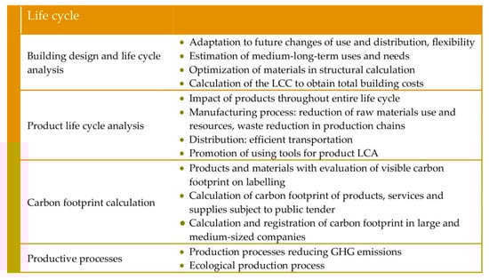 - The Ecological Public Procurement Plan (2018–2025) [17]. It refers to the GPP criteria set by the European Commission, highlighting the carbon footprint reduction.