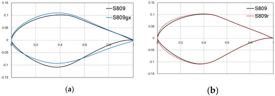 The airfoil shapes of (a) airfoil S809, S809gx, (b) airfoil S809, S809r.