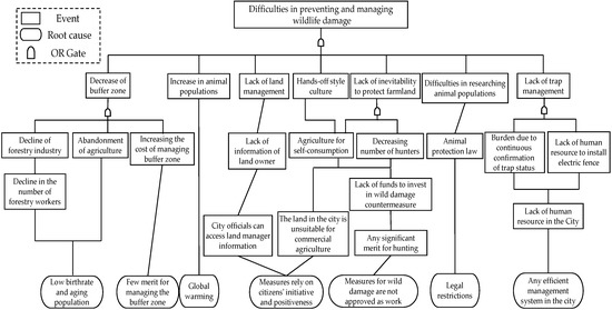 The structured fault tree of the wildlife damage problem in Akiruno City.