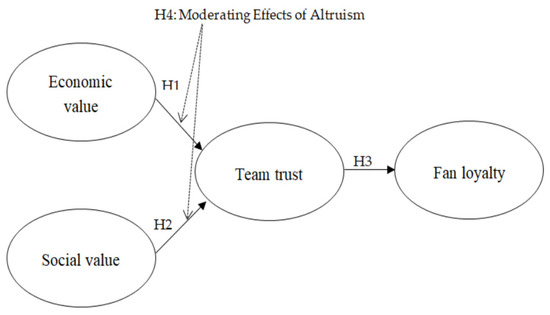The altruism of sport fans will have a positive moderating effect on the relationships among perceived economic and social value of creating shared vale program performed by a professional volleyball team and team trust.