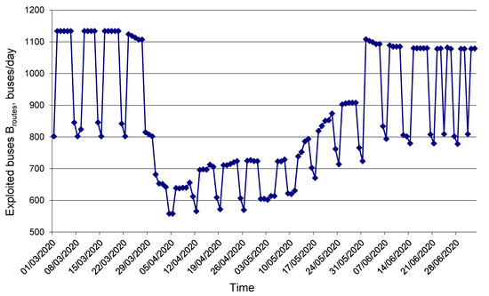 The time series of the patterns Broutes = f(Time) and Zdaily = f(Time) have identical silhouettes. This means that buses used during April–May 2020 (in the period of the acute phase of COVID-19) continued working on a schedule and implemented the planned program, but plans were changed by organizations.