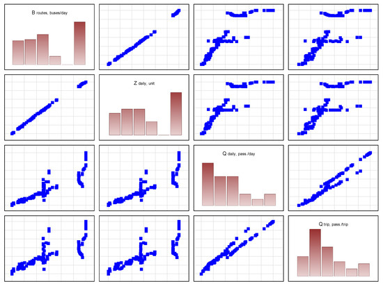 where ΔQdaily i—deviation of daily transportation volume; Qaverage daily over the period —average daily transportation volume over the period; ΔZdaily i—deviation of daily number of buses trips; Zaverage daily over the period—average daily number of buses trips.