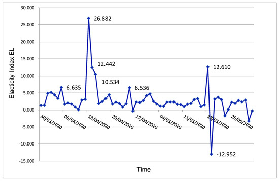 Changes in the elasticity index = f(Time of the acute phase of the COVID-19 pandemic).