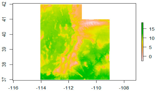 Utah, located in the western United States, is characterized by three major land areas: the Rocky Mountains, the Basin and Ridge region and the Colorado Plateau [19]. Due to the geographical diversity across the state, regions of varying climate persist; however, all are subject to the impacts of climate change [6]. It has been estimated that within the next 30 years, air temperatures will rise by 1.67–2 °C in the summer months. This will result in a higher number of extreme weather events; for instance, a 1.67 °C rise in the average temperature will increase the frequency of droughts in Utah by 2500% [20]. These looming issues have resulted in the State’s necessity for, and implementation of, wildlife conservation efforts. The average yearly investment in state conservation between 1998 and 2005 was USD 13,086,461, and it is evident from its ranking of fifth in the United States for the number of species found in Utah and nowhere else worldwide that safeguarding wildlife habitats will continue to rally support [21].