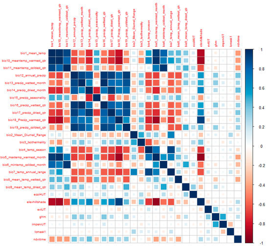 The environmental dataset was composed of 27 raster files of different environmental variables from different sources (Table 2).