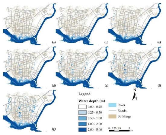 - Wu, X.; Wang, Z.; Guo, S.; Liao, W.; Zeng, Z.; Chen, X. Scenario-based projections of future urban inundation within a coupled hydrodynamic model framework: A case study in Dongguan City, China. J. Hydrol. 2017, 547, 428–442. [Google Scholar] [CrossRef]