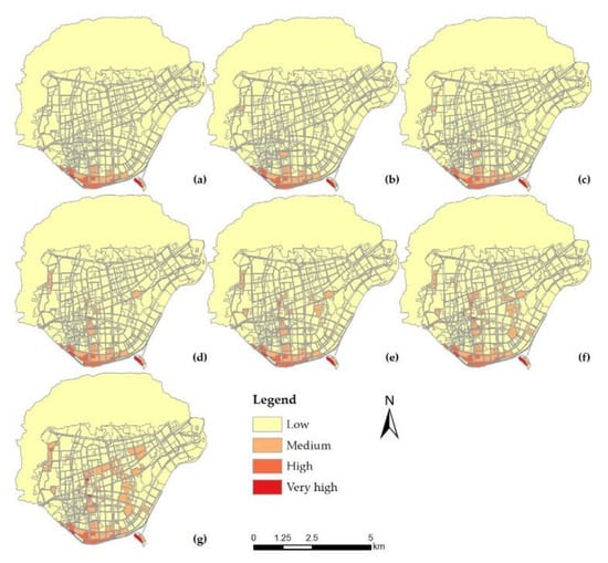 - Liu, J.; Shi, Z.-W. Quantifying land-use change impacts on the dynamic evolution of flood vulnerability. Land Use Policy 2017, 65, 198–210. [Google Scholar] [CrossRef]