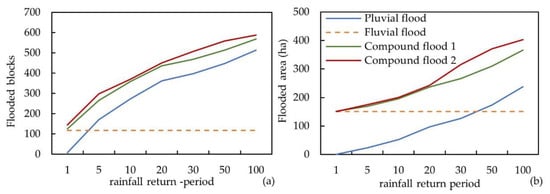| Compound flood | Rainfall and river levee overtopping | 50-year river flood combined with 1-, 5-, 10-, 20-, 30-, 50-year rainfall return periods, respectively |
