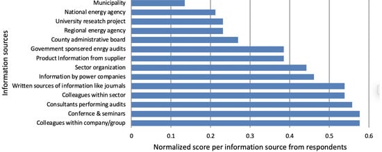Like non-energy benefits, respondents graded useful efficient information sources between moderate level and low-level. The companies mostly get information regarding energy efficiency through “colleagues within company/group”, “conferences & seminars”, “consultants performing audits”, “colleagues within sector”, “written sources of information like journals”, “information by power companies” and “sector organization” at a moderate level. Furthermore, companies considered “product information from supplier”, “government sponsored energy audits”, “country administrative board”, “regional energy agency”, “university research project”, and “national energy agency” low-level sources of circulating information. Moreover, companies have a very low chance to get information regarding energy-efficient operation via “municipality”. The low-level rating reflects the gap between government and administrative structures towards energy management strategies. Figure 7 shows the data obtained from regarding the sufficiency of energy-efficient operation related information provided to the iron and steel sector.