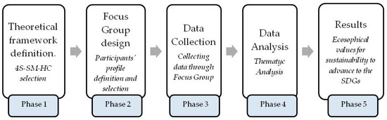 In order to develop the qualitative methodology to achieve the objectives of this research, we have grounded our research in the cutting-edge social sciences publications, thus establishing a correlation between the research question and existing scientific theory. The authors Schneider et al. identify two challenges and addresses four tasks that science must address in order to meet the global challenges posed by the UN2030A [118], proposing a profound reflection to be aware of and make explicit the values that are important and how these relate to the UN2030A, the 5 Ps, and the 17 SDGs. This paper will focus on the first task they propose: “unraveling and reflecting on the ethical values involved in sustainability”. This paper invites the definition of the philosophical foundations for sustainability and suggests further identification of values as the object of research. It is necessary to analyze which ethical values are involved in sustainability in order to “make values an explicit empirical and theoretical object of sustainability research”, something that has so far rarely been addressed in the social science literature. In this way, making values explicit, making them conscious, will strengthen them, thus contributing to facilitate the path towards the creation of scientifically supported SSMM [118].