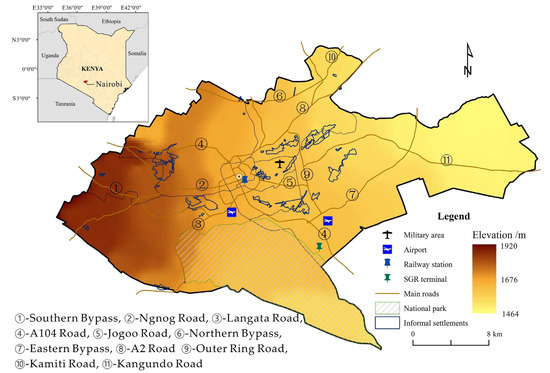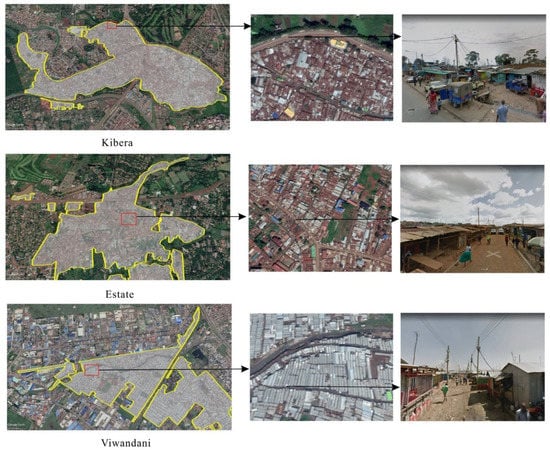 In the African continent, poverty-related informal settlements are characterized by high population density, low urban services, tenure insecurity, and informal housing, which are very common in large African cities and cities in less-developed countries [1,2,3,4]. In Kenya, 54.7% of the total population live in informal settlements [5]. According to the estimates of the World Bank, roughly 60% of Kenya’s urban families live in areas that would be defined as slums [6]. With the urbanization process, the expanding informal settlements have been regarded as a persistent problem in African cities, corresponding with a bad environment, pandemic disease, and community crimes [7,8,9], which are the obvious challenges for realizing the 2030 sustainable goals in Africa.