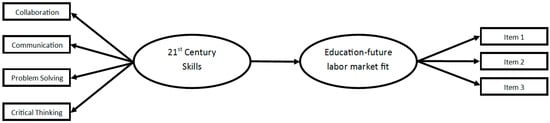 First, in line with our expectations, the results showed that 21st century skills positively relate to students’ perceived education-future labor market fit. This outcome underlines the importance of acquiring these indispensable skills in light of the changes in the world of work, which has a considerable impact on today’s graduates entering the workforce [cf. 1]. Moreover, in line with Warn and Tranter [] who state that it is important to focus on these skills to prepare students for the labor market—that is, enhancing their employability—is a priority for higher education. This can be realized by paying more attention to students’ development of 21st century skills in their curricula [,,,]. All in all, this result indicates that future employees need to learn and build up sufficient skills in order to be able to adapt to changing environments as posted by Carnevale and Smith [].