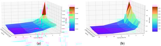 There are two aspects that define dimensionality in our context: One is the fraction of data used for training the DNN, and the other is the number of iterations (epochs) used. Figure 5 shows the effect of dimensionality on training progress. Specifically, DNN is trained with 1%, 3%, 5%, 10%, 20%, and 30% data to predict PDR (Figure 5a) and SNR (Figure 5b). The maximum number of epochs is set to 2000. It is apparent that learning improves with increasing the fraction of training data and the number of epochs. However, there are interesting and important observations made. It is apparent from Figure 5b that even when 1% data is used to train the DNN model, the RMSE decreases to a value under 3.0. When 10% or more data is used for training DNN, the RMSE either does not improve after 500 epochs or the improvement is statistically insignificant. The minimum NMAE achieved for 1, 3, 5, 10, 20, and 30% fraction of training data is 0.070, 0.058, 0.052, 0.048, 0.045, and 0.044, respectively. Thus, the accuracy in terms of NMAE when the DNN model is trained with only 1% data is 93%. Although these results are from one specific dataset and cannot be broadly generalized, it is still encouraging that a very small fraction of data can yield an accuracy which is practical.
