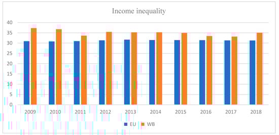 Income inequality in the European Union and Western Balkans, 2009–2018 (Source: Author’s own work).