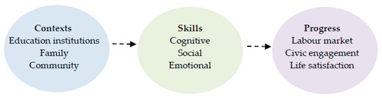 The interconnection between learning contexts, skills, and social progress (adapted from OECD, 2015 [5]).
