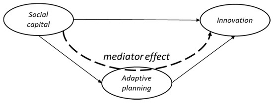 In terms of participation and association as elements for adaptive planning, in a study on the Mexican fishing industry, Nenadovic and Epstein [64] state that participation in collective decision making tends to be influenced by social capital. Furthermore, Gou, Liang, Wang, and Peng [65] also indicate that members of digital communities tend to participate more and exchange more information and ideas when there are strong social ties between them and inherent shared purpose. As a result, a vision of shared goals as part of adaptive planning could mediate between social capital and innovation.
