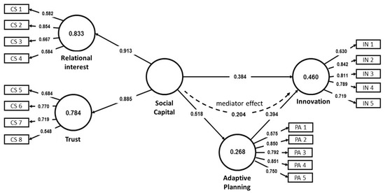 Direct and mediator effect of social capital and adaptive planning on innovation.