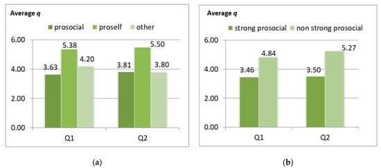 Average q for the C and F groups by SVO type: (a) questionnaire Q1; (b) questionnaire Q2.