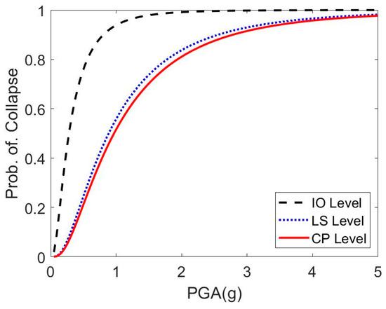 Fragility Curves for PGA Cases including IO Level, LS Level, and CP Level.