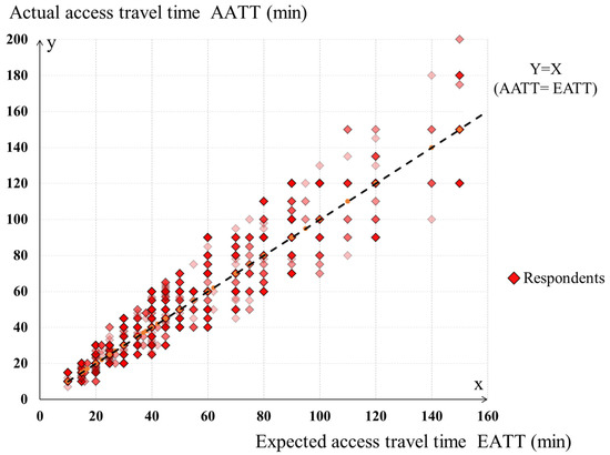 - The accessibility to HSR stations is closely related to the ATT estimation. Accessibility to HSR station is formulated as the ratio of AATT to EATT. EATT has a positive linear correlation with AATT.
