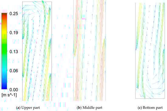 Figure 14. Velocity vectors through air cavity of the full case during one day at time 12:00 p.m.
