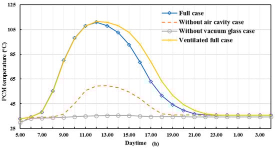 Figure 19. The comparison of the temperature of PCM during the whole day.