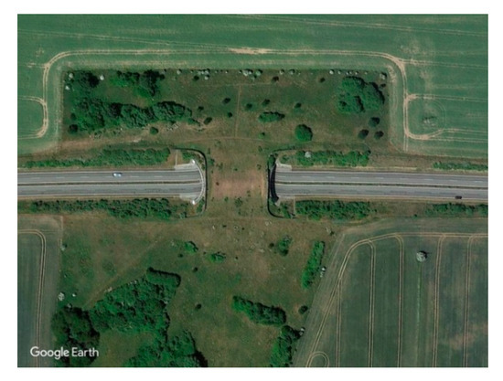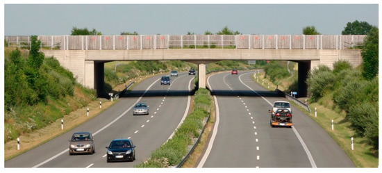 - Curzydło, J.; Konopka, J. Habitats Fragmented by Transport Infrastructure, Next Reconnected by Green Bridges and Culverts: Examples of Wildlife Crossing Structures in Austria, Belgium, France, Germany, Switzerland and Poland. In Proceedings of the International Scientific Technical Conference “Influence of Transport. Infrastructure on Nature”, Poznań, Poland, 13–15 September 2006; pp. 219–226. [Google Scholar]