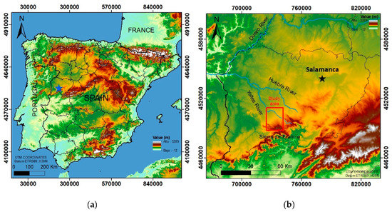 Location of the study area in the (a) Iberian Peninsula and the (b) Salamanca province.