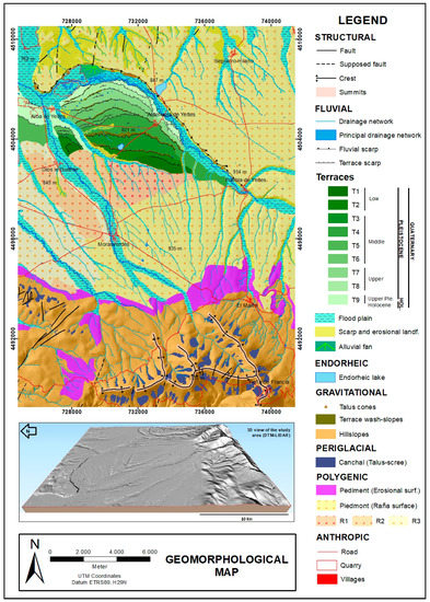 - Gutiérrez-Elorza, M. Geomorfología, 1st ed.; Pearson-Prentice Hall: Madrid, Spain, 2008; p. 920. [Google Scholar]
