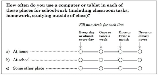 Item-responses on using computers for schoolwork in the TIMSS 2015 Student Questionnaire [45].