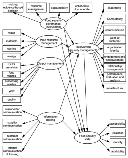 From the perspective of managing the manufacturing practices in the context of sustainable food security, Ocampo [63] identified seven sustainable manufacturing practices. These were ranked in the following order: total quality management, resource efficiency, material efficiency, just-in-time, green manufacturing, waste elimination at source, and ecoefficiency. In the food industry, quality management and innovation have shown a significant impact on green performance [64]. Ocampo [63] suggested that total quality management was the most suitable intervention as it focuses on meeting customer expectations of integrating sustainability considerations in finished food products.