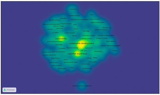 Figure 3 presents a heat map that shows the intertwining between the most frequent keywords (concepts), including the integration between “Customer Centricity” and “Sustainability”.
