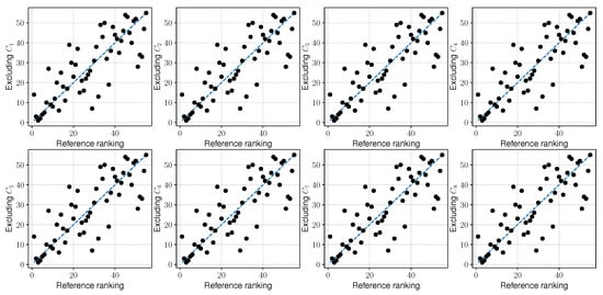 Correlation with reference ranking when one criterion excluded.