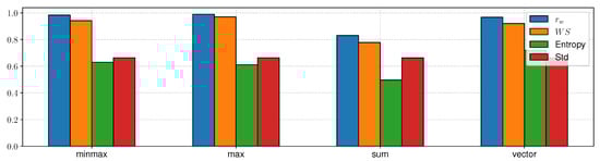 To determine the relevance of the criteria, a reference ranking was used. It was created using the model identified by the COMET method. In the next step, we set eight rankings which are created by successive exclusions of individual component criteria from the primary model. Each such ranking has exactly seven active criteria and one excluded criterion. Table 3 presents the main ranking without exclusions and eight derivative rankings with their ten initial alternatives. The most important information contained in this table is the value of the similarity coefficient between the main ranking and individual derivative rankings. For this purpose, two measures of and were used. The highest value of was recorded for the ranking that excluded the criterion from the main model (value 0.8429). The smallest value was obtained for the ranking that excluded criterion (value 0.7176). This means that the criterion had a more significant impact on the ranking change than the criterion, so it was more significant than the criterion. The lowest value is obtained for criterion , i.e., 0.8377, so based on the coefficient, the most important is criterion and the least important is criterion . It should be reminded here that both coefficients have a different paradigm of determining the similarity of the two rankings. Therefore, both these coefficients will be used for further investigation.