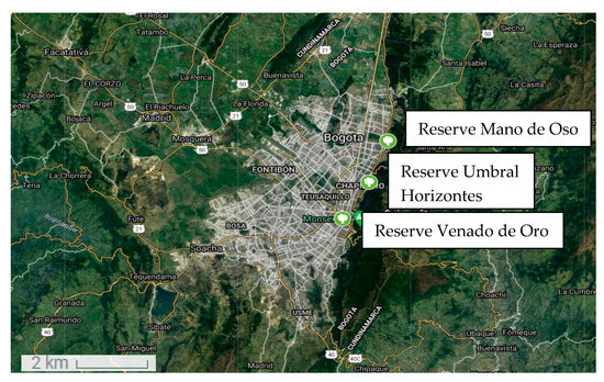 Figure 1. Location in Bogota of the Reserves Mano de Oso, Umbral Horizontes, Venado de Oro. - (4)