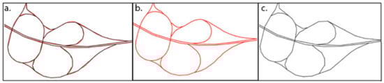 Prior to the administrative limits rendering, the regional road-circulation network is submitted to a generalization process using QGIS’ GRASS GIS integrated Douglas-Peucker simplification algorithm (v.generalize) []. However, a small tolerance (0.1) is applied during the generalization with the intent to reduce the excessive numbers of polylines’ vertices in roundabouts and highway accesses, while preserving their road geometries [vi] (Figure 1). Despite being a small tolerance, this has significant effects, described in the results section, regarding reduction of road-elements’ overall vertices number, when RCL graphs are converted into Angular-Segment maps using Depthmap X 0.5 []. This preprocessing step is a requirement for assessing Betweenness Centrality hierarchies through Space Syntax’ Angular Analysis [].