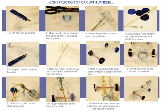 Construction of a “car with windmill”. The content is a translation of the original material in Spanish.