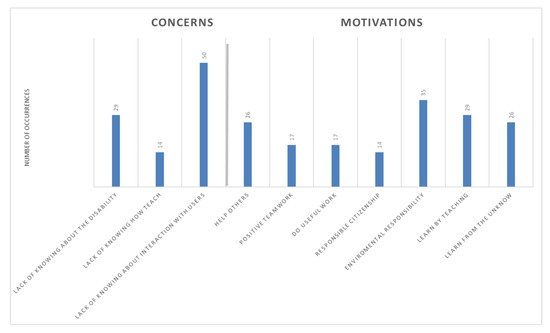 The students have shown more motivations than concerns when facing the SL activities, as it can be seen in Figure 10. The students valued the fact of helping other people very positively. For instance, some reflections have been the following: