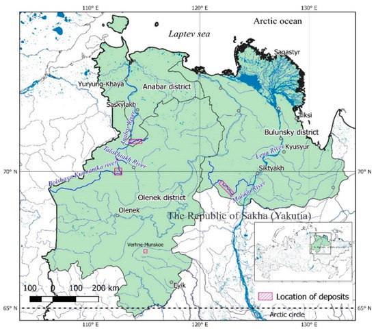 The territory of the Verkhne-Munskoye field is located on the right bank of the Muna River, the left tributary of the Lena River—one of the largest in Siberia. The territory is located in the municipal area “Olenek Evenk national district” of Yakutia. In 2011, according to special federal order, a part from natural reserve of the Olenek was withdrawn for exploration and production of diamonds.