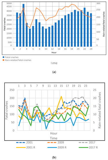 - Jackson, T.L.; Sharif, H.O. Rainfall Impacts on Traffic Safety: Rain-Related Fatal Crashes in Texas. Geomat. Nat. Hazards Risk 2014, 7, 1–18. [Google Scholar] [CrossRef]