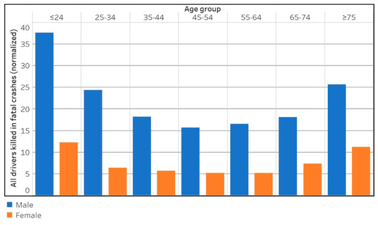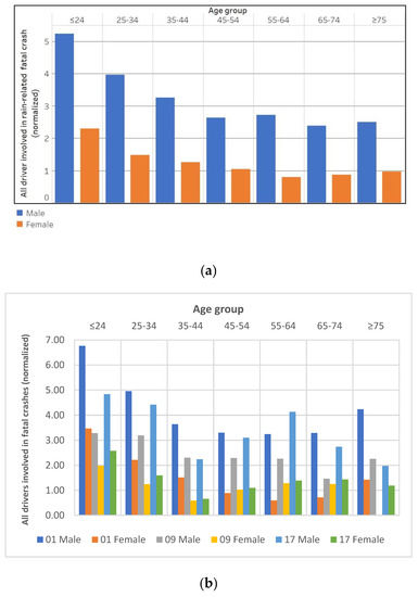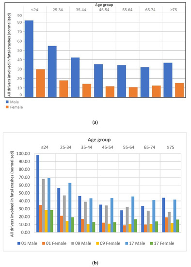 - Li, G.; Baker, S.P.; Langlois, J.A.; Kelen, G.D. Are Female Drivers Safer? An Application of the Decomposition Method. Epidemiology 1998, 9, 379–384. [Google Scholar] [CrossRef]