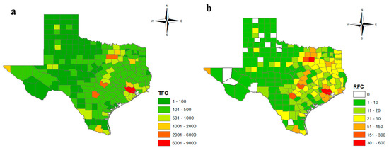 APA StyleHan, Z., & Sharif, H. O. (2020). Investigation of the Relationship between Rainfall and Fatal Crashes in Texas, 1994–2018. Sustainability, 12(19), 7976. https://doi.org/10.3390/su12197976
