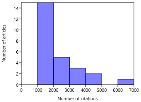 Frequency distribution of citations of the considered articles.