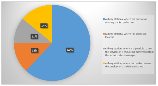 The biggest value is attributed to the service of stabling sidings which in spite of its “popularity” is not sufficient and shift dispatchers of carriers are forced to utilize other stations, or tell half-truths to persuade train dispatchers of the infrastructure manager to side-track their train in particular. In contrast, shunting services provided by the infrastructure manager feature the smallest weight. These services are utilized by few carriers due to their financial unprofitability.