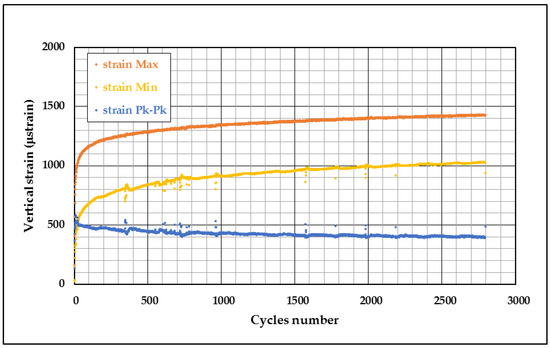 The typical results of a repeated load test are shown in Figure 8 for the accumulated permanent deformations as a function of the number of load cycles.