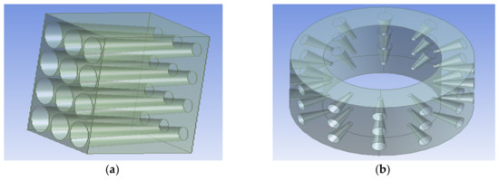 The height, width, and length are scaled as 1.4, 1.0, and 0.6 m, respectively. Additionally, the outer and inner radius of the diffuser are arranged as 0.03 and 0.015 m, respectively. The AutoCAD geometry of the diffuser consists of 12 tubes as shown in Figure 6 and adapted for the simulation process.