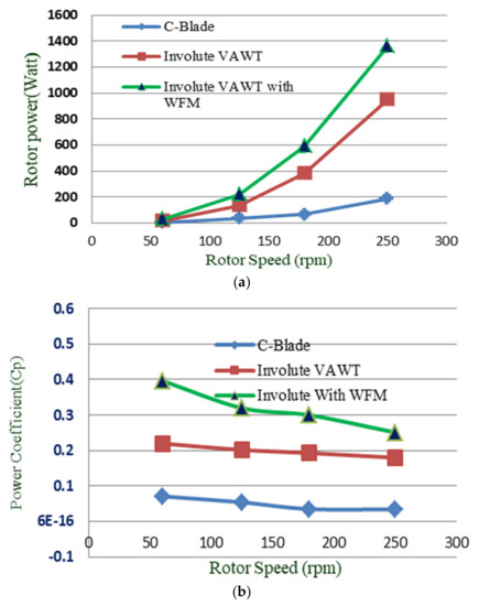 Electrical characteristics: (a) rotor power and (b) power coefficient.