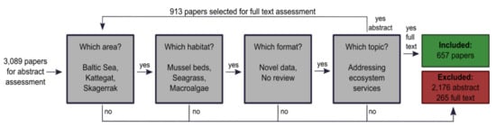 The BONUS MARES bottom-up approach has searched for knowledge linking habitats to final services. The knowledge that can be generated by the systematic literature analysis is limited to publications that can link natural habitats to final services. That which relates to the economic valuation of final services, not linked to specific habitats (mussel reefs, macroalgae and seagrass beds), is not present.