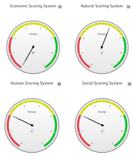 An alternative version to display Eco-GAME matric value dimensions (natural, social, human, and economic) based on expert opinion on the scale of 0–7 (scaling further described in Table 1).