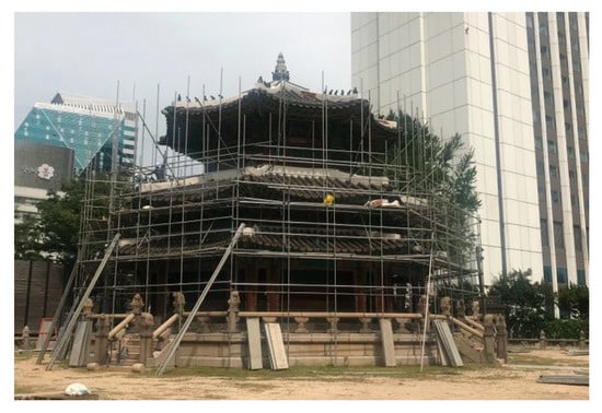 - Cultural Heritage Administration, Guideline for National Treasury Subsidy Project for Cultural Heritage Repair and Maintenance. Available online: https://opengov.seoul.go.kr/sanction/19561326?from=cis&tid=24123 (accessed on 28 August 2020).